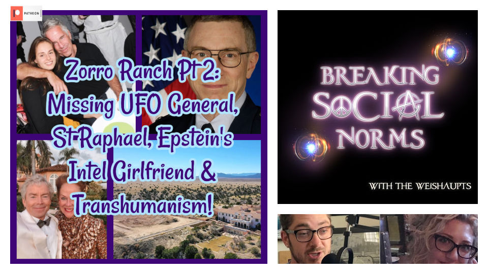 Listen to “Zorro Ranch Pt 2: Missing UFO General, St Raphael, Epstein's Intel Girlfriend & Transhumanism!” on Spreaker.Welcome back! You’re listening to the “Breaking Social Norms” podcast with the Weishaupts! Today we wrap up the two-part series on Zorro Ranch! In today’s Part 2 we’ll discuss the missing UFO General McCasland from Albuquerque, the new name of Zorro Ranch (Saint Raphael and the alien connection there), Don Huffines’ HEST Invemetments in biotechnology and companies harvesting cells from infants, Karyna’s Russian Intel connections, Epstein’s Transhumanism, adrenochrome and why this is happening!
